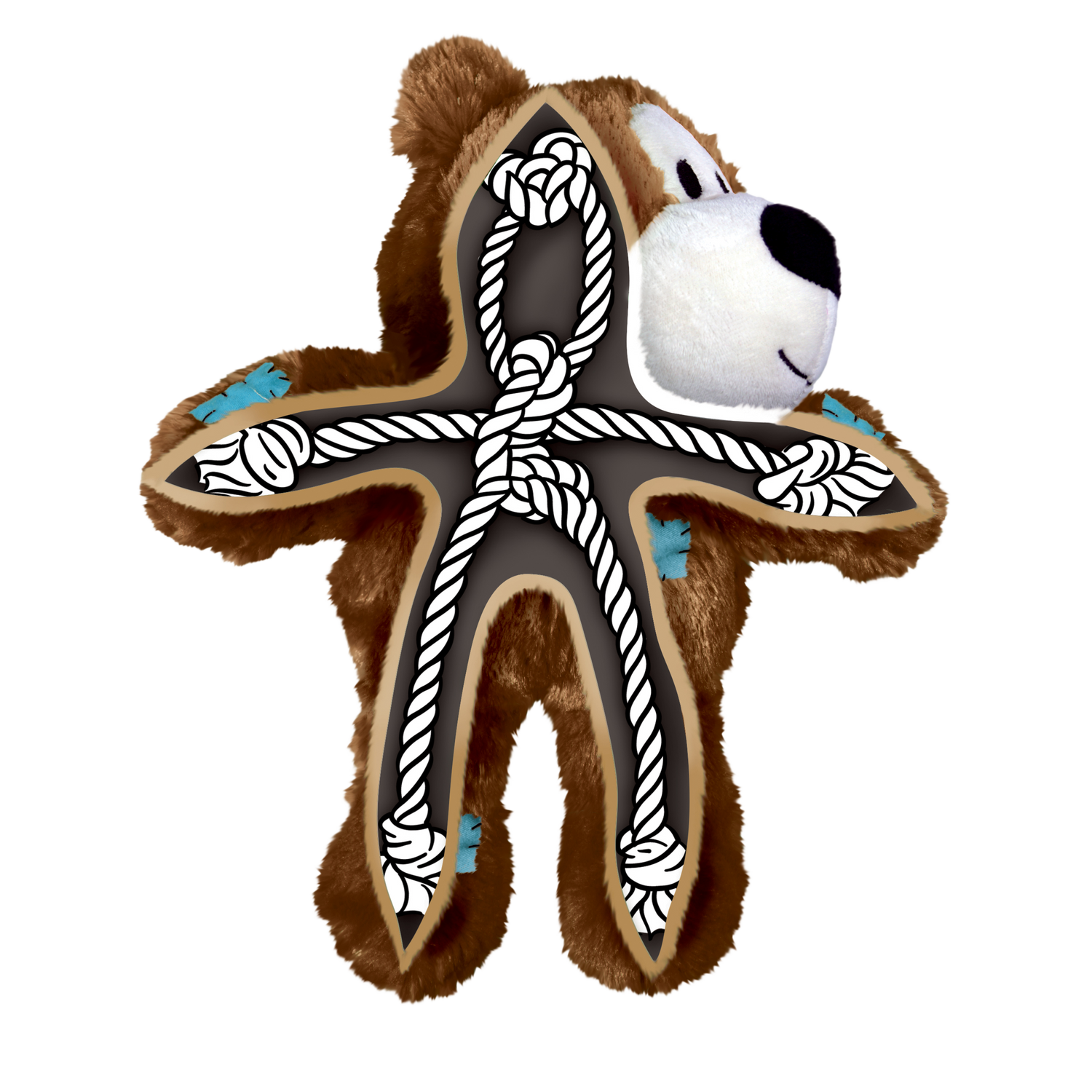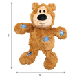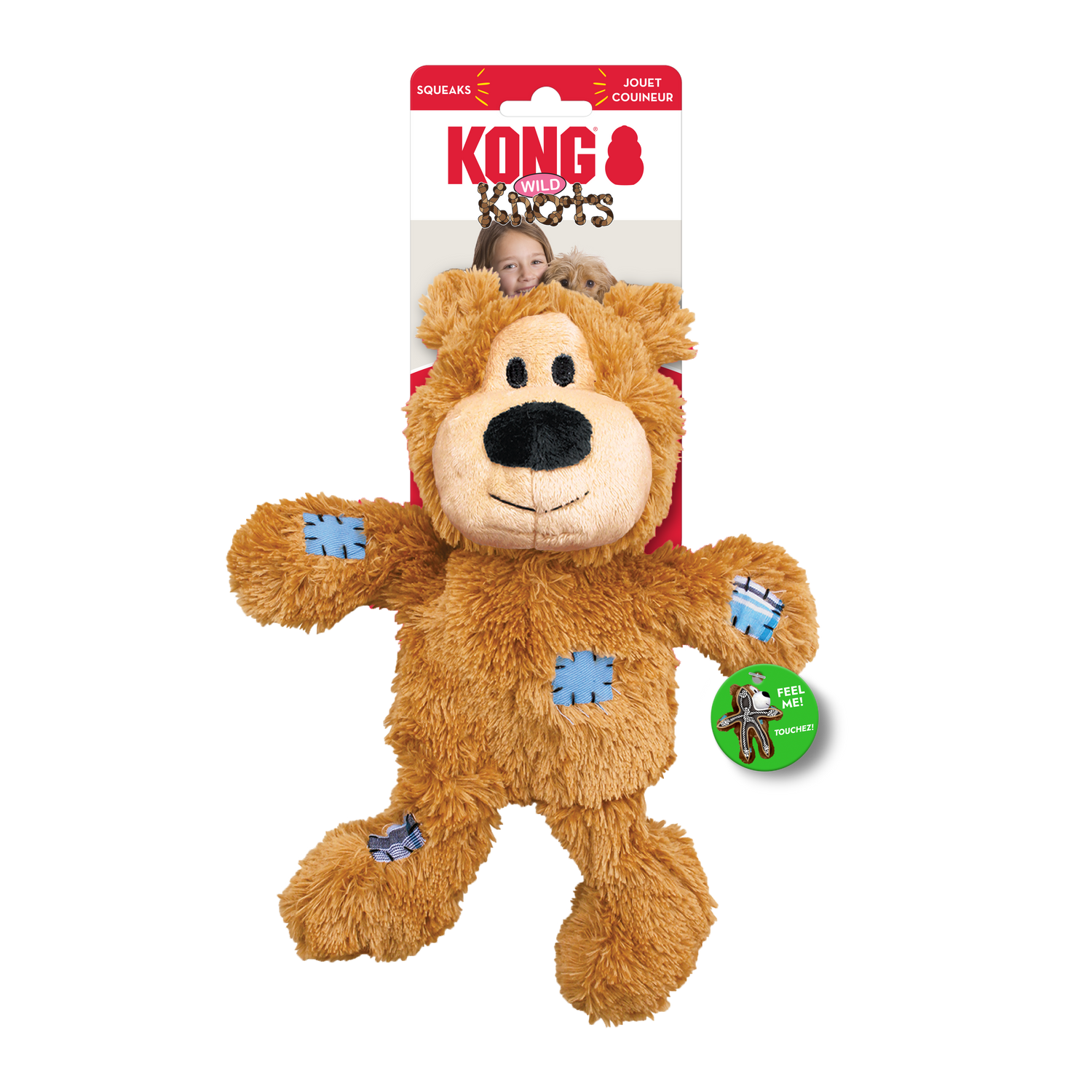 KONG Wild Knots are soft and cuddly on the outside while durable and strong on the inside. Wild Knots bears are sure to be a hit with dogs and their pet parents. Dogs love the knotted skeleton, and the reinforced plush body provides extra durability. KONG Wild Knots have less stuffing for less mess and they squeak to entice play.